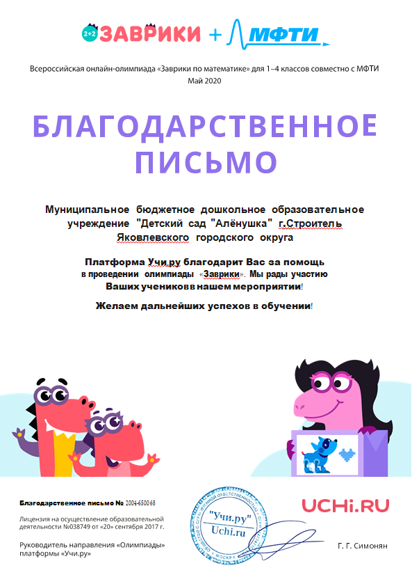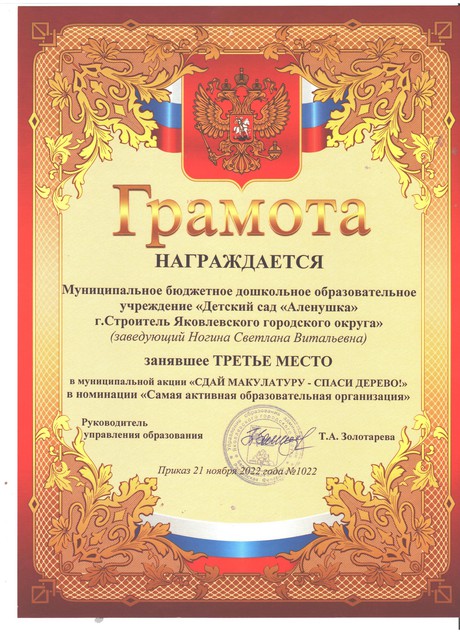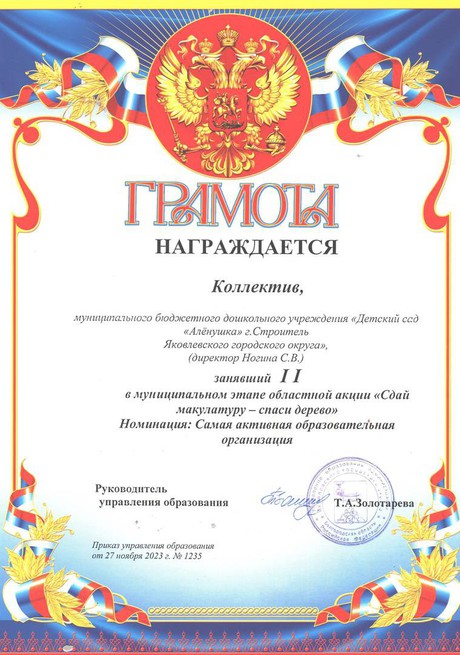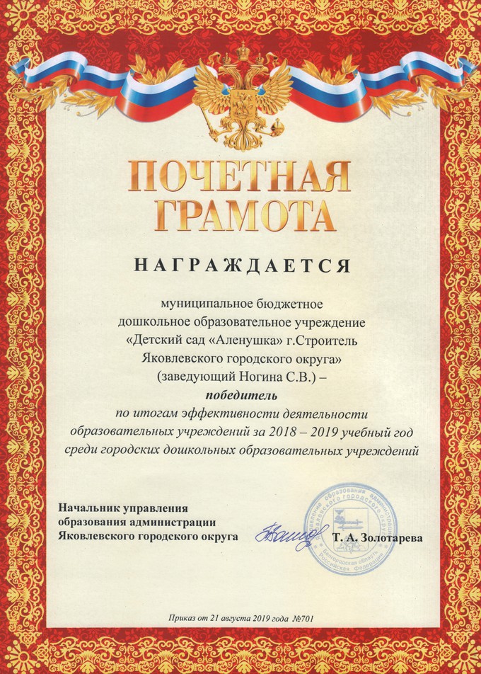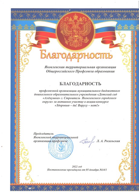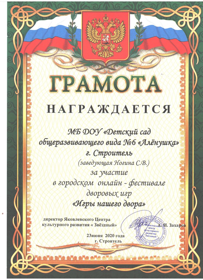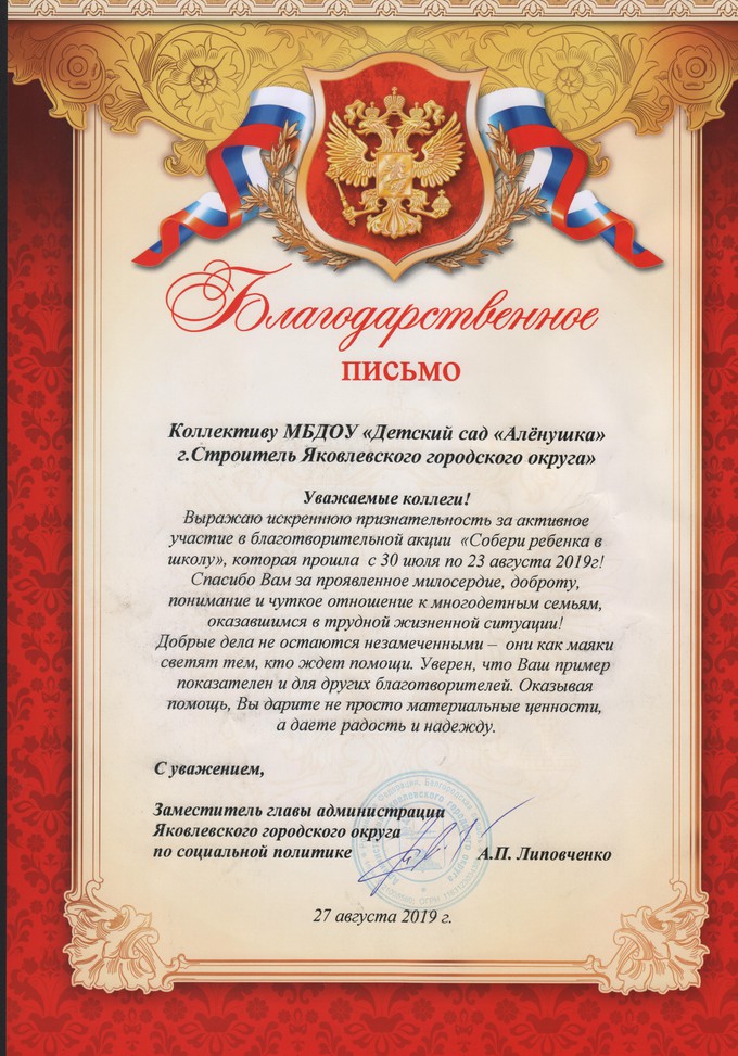 Детский сад "Аленушка" г.Строитель Яковлевского городского округа