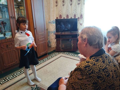 Ребята заранее подготовились к встрече: выучили стихи на военную тематику и приготовили поздравительную открытку. Участником акции стала Усевич Зинаида Николаевна, жительница города Строитель, рожденная в тяжелые военные годы.