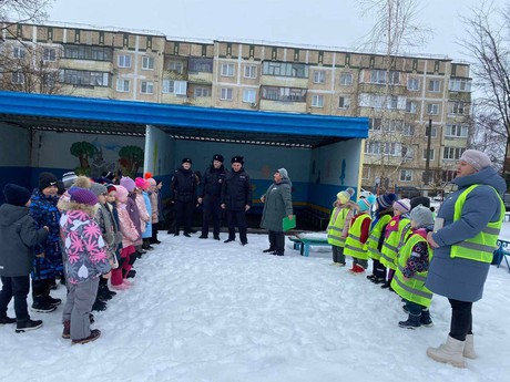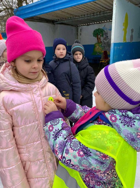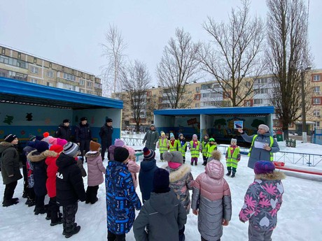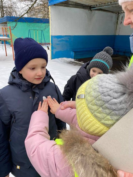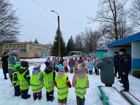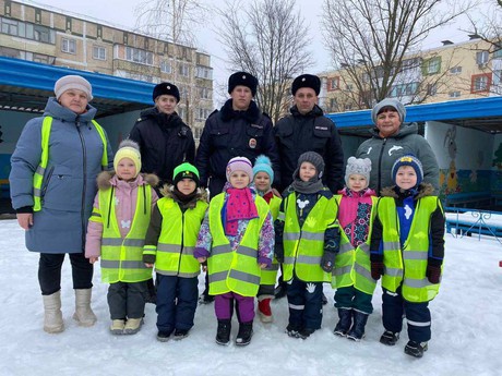 Старший государственный инспектор БДД Пархоць Дмитрий Федорович, полицейские ОВППСП - старший сержант полиции Базин Денис Михайлович, младший сержант Жукова Марина Сергеевна провели с детьми беседу о соблюдении правил дорожного движения и о необходимости использования световозвращающих элементов на одежде, которые в темное время суток повышают безопасность пешеходов.