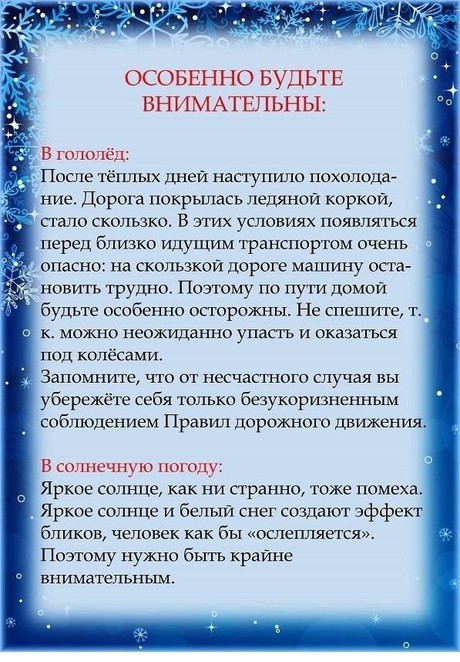 Дети редко акцентируют внимание на специфические «зимние» опасности, поэтому объясните ребенку, почему на зимней дороге необходимо особое внимание!