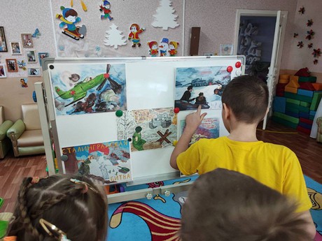 Проведённые мероприятия, вызвали огромный интерес воспитанников старшего дошкольного возраста к событиям Сталинградской битвы. В процессе беседы ребята погрузились в далекое военное время, перед ними предстали тяжёлые бои фронта. Примером отваги и мужества стал для них рассказ о защитниках знаменитого «Дома Павлова», которые держали оборону и не дали врагу захватить его, о битве за Мамаев Курган, где каждый квадратный метр пробит тысячью осколков, мин и гранат.