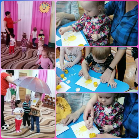Сегодня, 05 апреля 2022 года, в музыкальном зале состоялась очередная встреча «Солнечные зайчики» педагогов ДОО с детьми и родителями, посещающими Консультационный центр игровой поддержки. В ходе игрового сеанса ребята вместе с педагогами Вороновой И.В. и Ореховой М.П., музыкальным руководителем Черниковым А.В. отправились на поиски Солнышка. В пути малышам встретились Мышка, Птичка и Зайка, с которыми малыши весело играли, занимались продуктивными видами деятельности. Когда появилось Солнышко, восторгу малышей не было предела! Они собирали лучики, догоняли солнечных зайчиков, играли в игру "Солнышко и дождик" и, конечно же, рисовали озорное Солнышко.