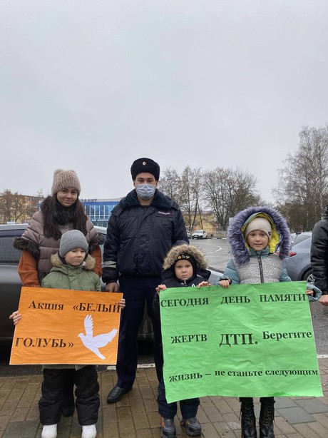 21 ноября 2021 года педагогами МБДОУ «Детский сад «Аленущка» г.Строитель», воспитанниками и их родителями (законными представителями) совместно с сотрудниками ОГИБДД ОМВД России по Яковлевскому городскому округу была проведена акция-автопробег по пропаганде безопасности дорожного движения «Белый голубь», посвященная Всемирному дню памяти жертв ДТП.