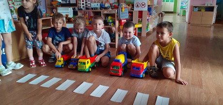 Воспитанники младшей группы «Солнышко» в беседе «На чем люди ездят» узнали, что на грузовых машинах перевозят грузы: песок, картошку, яблоки, а на маленьких ездят люди, конструировали из строительного материала грузовые автомобили.