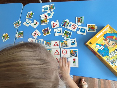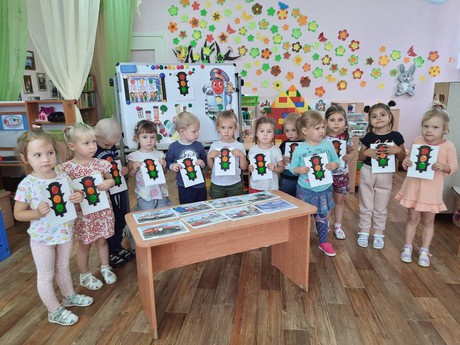 В младшей группе «Почемучки» была проведена беседа «Всем ребятам надо знать, как по улице шагать», предложены дидактические игры «Дорожные знаки» и «Машины разные нужны, проведена подвижная игра «Воробушки и автомобиль». В группе «Теремок» малыши уточнили знания дорожной безопасности в играх «Разрезные картинки», «Светофор», «Чего не хватает».