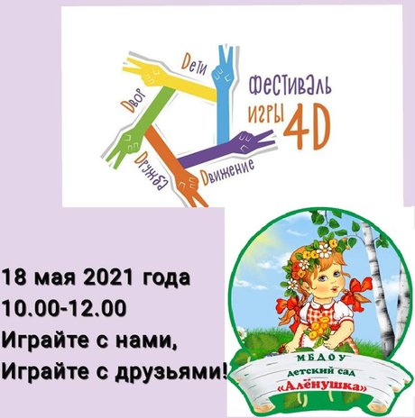 В рамках регионального проекта "Формирование детствосберегающего пространства дошкольного образования Белгородской области"("Дети в приоритете") 18 мая в 10.00 часов на территории детского сада "Аленушка" состоится Фестиваль детской игры "4Д: дети, движение, дружба, двор".