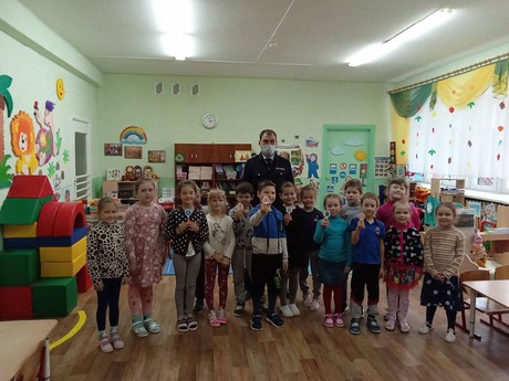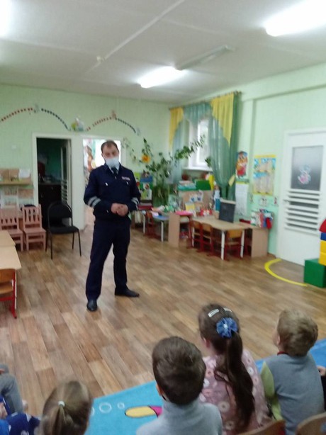 Сегодня гостем подготовительной группы «Сказка» стал сотрудник ГИБДД по Яковлевскому городскому округу Василенко Григорий Валерьевич. Эта встреча была запланирована в рамках Недели безопасности, которая проходит в ДОО с 21 по 25 сентября. Воспитание у детей навыков безопасного поведения – очень важная проблема. Не секрет, что количество дорожно-транспортных происшествий с участием детей, в том числе и дошкольного возраста, не уменьшается, поэтому сегодняшняя беседа представителя государственной автоинспекции с дошкольниками была именно о правилах дорожного движения. Знаки дорожного движения, ношение световозвращающих элементов на одежде в темное время суток, перевозка в удерживающих креслах, переход дороги в положенном месте - эти вопросы стали одними из главных и на которые воспитанники нашего детского сада с легкостью отвечали.