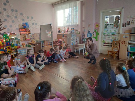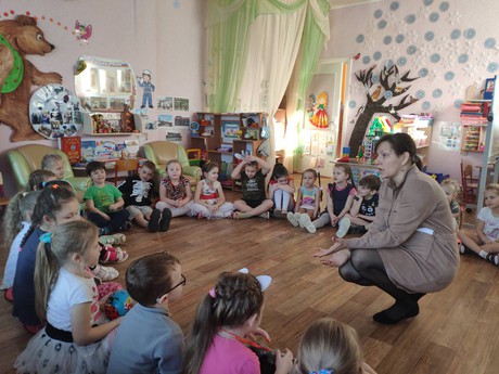 Екатерина Михайловна рассказала дошкольникам о профессии, которая им хорошо знакома, ведь воспитатель находится рядом с ребятами каждый день. Она уточнила и дополнила знания детей о профессии, ее важности, значимости, сложности.