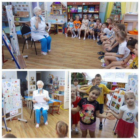 А ещё дошкольники имели возможность встретиться с гостем группы, медицинской сестрой детского сада Адониной А. Е., которая также обратила внимание ребят на то, что сейчас зима, холодное время года, связанное с всплеском простудных и вирусных заболеваний, победить которые можно при соблюдении определённых правил. Это, гигиена рук, режим дня, прогулки на свежем воздухе, употребление в пищу овощей и фруктов. Ребята поиграли в игру «Овощи-фрукты», послушали художественные произведения о ЗОЖ, отгадывали загадки.