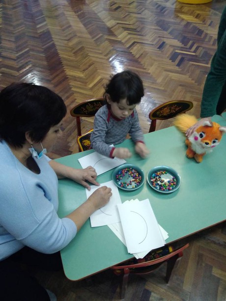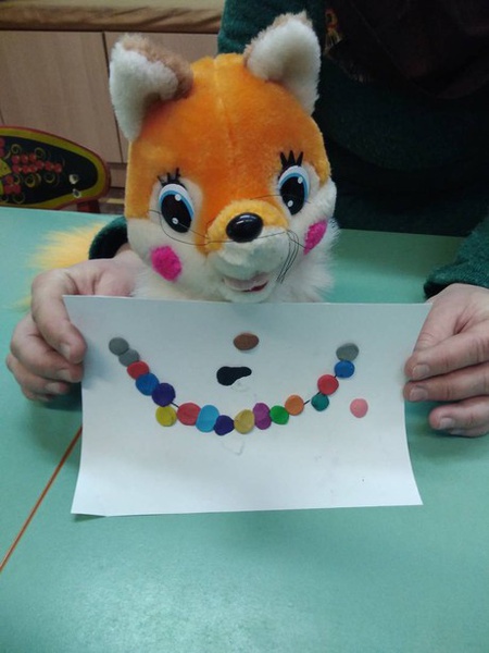Сколько радости и восторга доставили ребятам музыкальные и подвижные игры «Ладушки-ладошки», «Собери орехи», «Снежки», «Лиса и зайчата». Положительные эмоции получили малыши и от продуктивной деятельности, ведь рисование, лепка, аппликация - одни из самых больших удовольствий для ребёнка раннего возраста. Проявили собственную фантазию в собирании бус для лисички (пластилинография «Собери бусы»), при наклеивании кружочков, квадратиков, треугольников на шарфик для волчонка (аппликация «Украсим шарфик узором»). Ну а завершилась встреча игрой в мыльные пузыри!