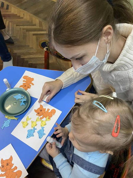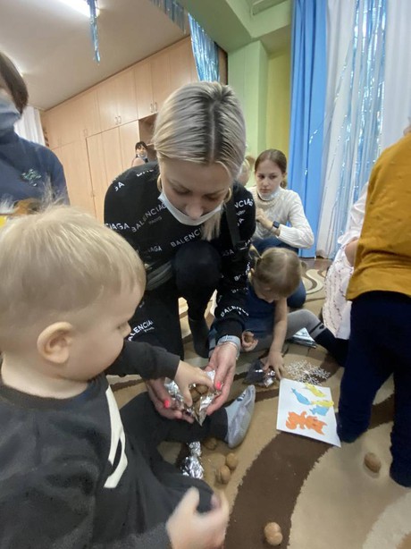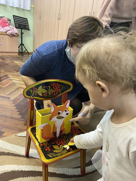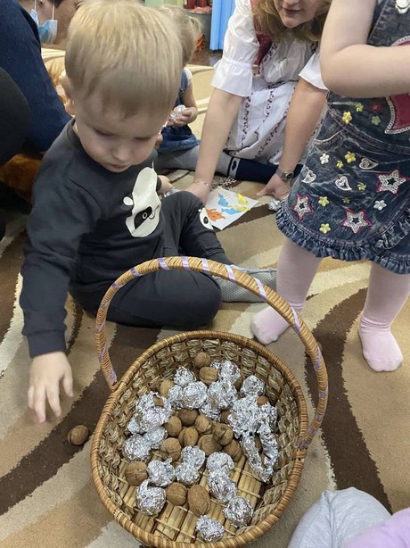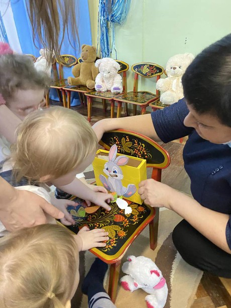 Во время продуктивной деятельности накормили лисят рыбкой, сделали красивые пушистые хвосты бельчатам, спрятали орешки в фольгу, укачали маленьких медвежат, накормили медвежонка, зайку, бельчонка и лисенка тем, что они любят: ягодкой, морковкой, орешками и рыбкой.