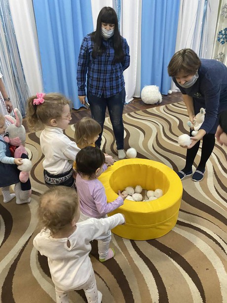И сегодня, 18 января, состоялась очередная встреча в Консультационном центре «Центр игровой поддержки». Малыши и их родители (законные представители) попали в гости к большим и маленьким жителям леса. Вместе с Алёнушкой и дикими животными, ребята играли на погремушках, танцевали, бросали снежки.