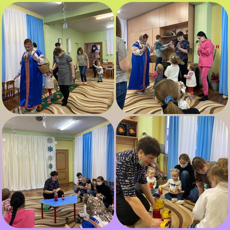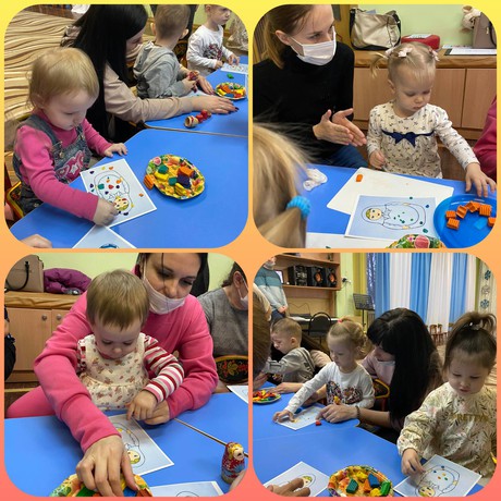 Сегодня игровой сеанс «К нам пришла матрешка…» в Консультационном центре «Центр игровой поддержки» был направлен на создание устойчивого интереса к совместной деятельности через использование народной игрушки - матрешки . Малыши вместе с педагогами Вороновой И.В., Ореховой М.П., Черниковым А.В. рассматривали матрешку, вкладывали маленьких матрёшек в большие, танцевали с ними, строили домик, украшали сарафан способом «налепа» разноцветным пластилином, нанизывали яркие бусы для матрешек, все вместе смотрели русскую народную сказку «Колобок».