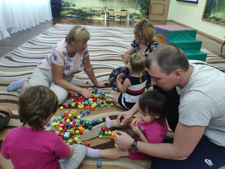 На базе детского сада "Алёнушка" начал работу Консультационный центр "Центр игровой поддержки" для родителей, чьи дети получают воспитание в форме семейного. Сегодня состоялась первая встреча с родителями и малышами. "Игрушки" - так называлась тема игрового сеанса, где педагоги Ангольт Е.В., Бондаренко И.А., Галкина Л.Н. знакомили детей через игровую деятельность с любимыми игрушками - мячом, погремушкой, пирамидкой.