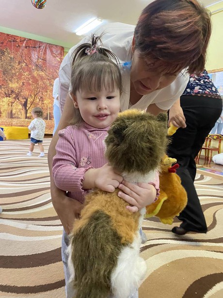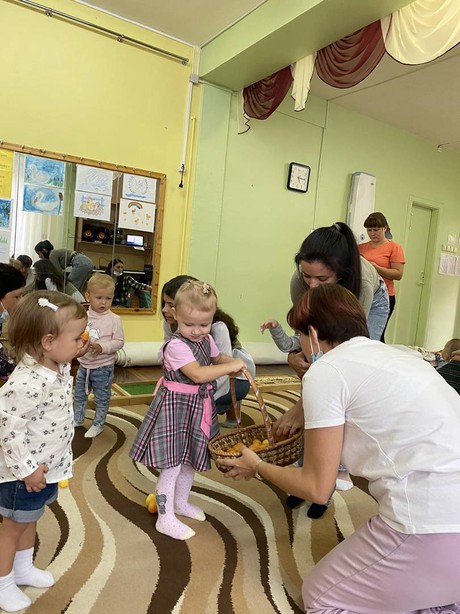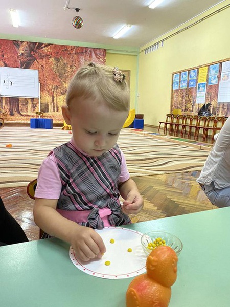 И сегодня, 14 сентября 2021 года, состоялась очередная встреча в консультационном центре «Центре игровой поддержки». В гости, к малышам и их мамам, пришла курочка – рябушечка. Она принесла с собой много интересных заданий и развивающих игр. Наши маленькие гости катали яички, прятали в горох, затем собирали их в корзинку. С маленькими цыплятам и курочкой ребята поиграли, потанцевали, убегали с ними от кошки. Поплясали с платочками. Вместе с мамами покормили цыплят зернышками: придавливали пластилиновые шарики к бумажной тарелке. С помощью конструктора построили домики для цыплят.