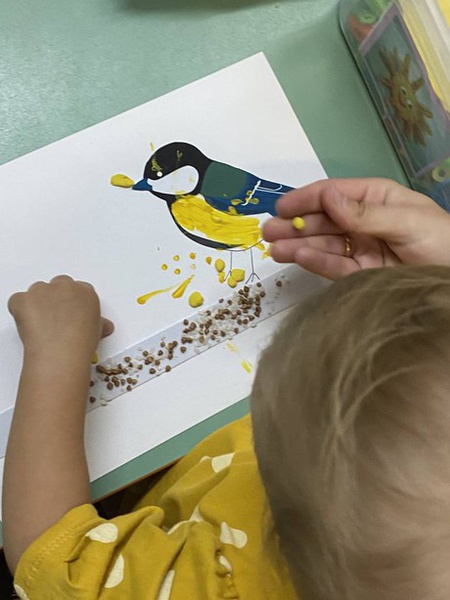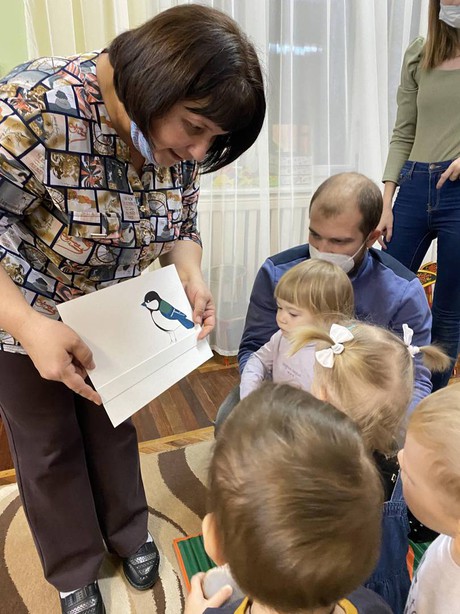 16 ноября 2021 года на базе детского сада «Аленушка» состоялась очередная встреча с родителями (законными представителями) и малышами, посещающими Консультационный центр «Центр игровой поддержки». Тема игрового сеанса «Маленькая птичка прилетела к нам…», целью которого стало воспитание доброжелательного отношения и любви к птицам, раскрытие творческих способностей детей через различные виды изобразительной и музыкальной деятельности. В гости к малышам прилетела птичка-невеличка. Ребята рассмотрели её – нашли глазки, крылышки, яркую грудку. Вместе с птичкой полетали, попрыгали, поклевали зёрнышки. А синичкам, используя нетрадиционный способ рисования (ватные палочки), раскрасили грудку , проложили дорожку, насыпая крупу на липкую ленту, накормили птичку зёрнышками, скатывая их из пластилина. Игровая деятельность прошла весело и задорно, дети и их родители получили массу положительных эмоций.