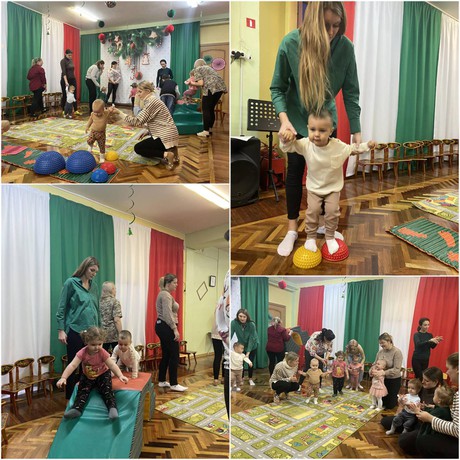 Педагоги Звягина Г. В., Кириловская И. В., Сапянова А.С., Галкина Л.Н. предложили участникам встречи разные виды детской деятельности, направленные на развитие чувства ритма, координации, мелкой и общей моторики рук, укрепление физиологического дыхания.
