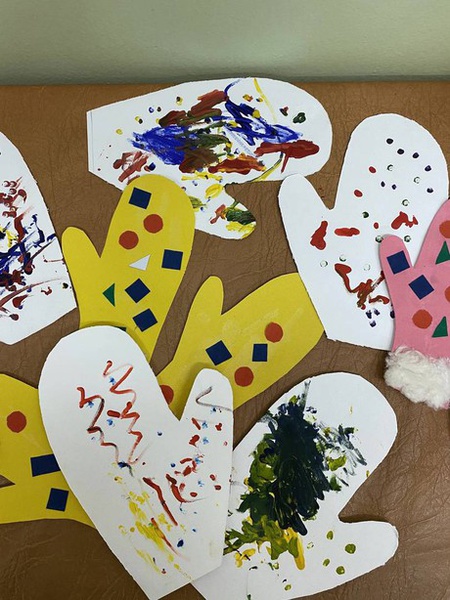 Педагогами Кириловской И. В., Звягиной Г. В. и музыкальным руководителем Галкиной Л. Н. в ходе игрового сеанса были предложены разные виды деятельности - двигательная, музыкальная, изобразительная. Малыши испытывали радость от того, что помогали кукле Маши украшать варежки с помощью ватных палочек и гуаши, аппликативных узоров, налепов из пластилина. Много эмоций вызвали у детей раннего возраста игры со снежками, музыкальная игра «Как под снежным покрывалом….», танец с фонариками вокруг елки и совместное украшение с мамами маленькой ёлочки. Сегодняшняя встреча стала точкой отсчета в ожидании новогоднего праздника, поэтому впереди у нас - все самое интересное!