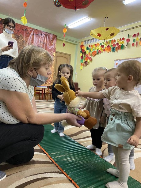 Сегодня в ДОО состоялась очередная встреча в Консультационном центре «Центр игровой поддержки» для родителей и малышей, его посещающих. Тема игрового сеанса «Мы ножками топ-топ…» способствовала расширению представлений детей раннего возраста об окружающих предметах. Разные виды деятельности (игровая, продуктивная, музыкальная, двигательная), предложенные педагогами Бондаренко И.А., Рябовой О.В., Галкиной Л.Н., Старченко Т.Д. способствовали поддержанию интереса на протяжении всего времени пребывания малышей.
