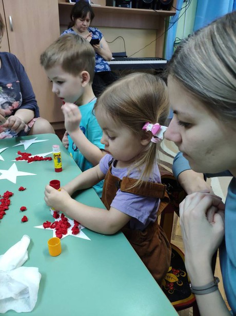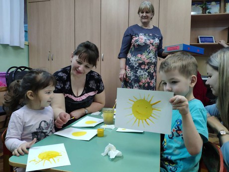 Родителям тоже было интересно играть с малышами. Они с увлечением вместе с детьми выполняли все задания, занимались продуктивной деятельностью (рисовали лучики для солнышка, делали из смятой бумаги красивые звёздочки). Малыши с желанием выполняли все задания. Игровая деятельность помогала обогащению игрового опыта не только детей, но и родителей, а также принесла детям радость и огромное удовольствие!
