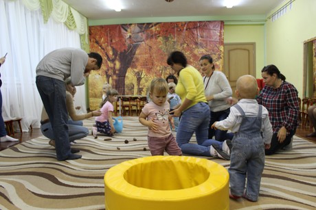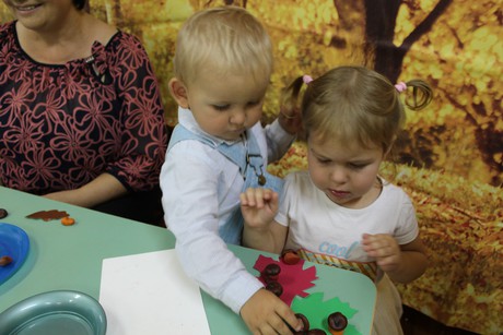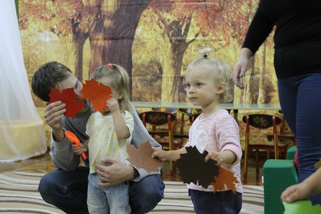 «Осень - чудная пора», именно под таким названием прошла 1 октября 2019 года встреча с родителями (законными представителями) и малышами, посещающими Консультационный центр "Центр Игровой Поддержки". Первые вестники Осени – разноцветные листочки пригласили ребят на танец, а потом из листьев малыши собрали букет. Заинтересовать и вовлечь малышей в игру также помогли и лесные зверята, которые пришли в гости к деткам. Весёлый бурый Мишка по имени Топтыжка, шишки в лесу собрал, и с малышами поиграл в игры «Собери шишки» и «Попади в кольцо». Встретив белочку, малыши помогли ей сделать запасы на зиму: необычные грибочки - пластилин (ножка для гриба) и каштан (шляпка гриба). Заглянул к деткам и зайчишка, который искал в огороде морковку, но, к сожалению, ничего так и не нашел. Но под руководством взрослых, маленькие друзья, дружно принялись собирать урожай сладкой моркови и сочной капусты. Не прошел мимо ребят и ёжик, четверо ножек. Оказалось, что ёжик тоже готовится к зиме, собирает листочки, устилает ими свою норку. Вот так малыши сегодня много добрых дел сделали: и белочки помогли, и зайку угостили, и с мишкой поиграли, а для ёжика осенние листочки наклеили, чтобы он всю зиму спал в тепле.