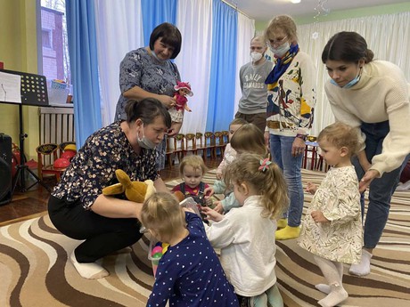 «Погремушка - красивая игрушка» - именно так назывался сегодня игровой сеанс с малышами и родителями, посещающими Консультационный центр «Центр игровой поддержки». Вместе с куклой Катей малыши украшали погремушки, дорисовывали им палочку-ручку, лепили игрушку из пластилина, искали спрятавшуюся игрушку под платком и весело танцевали с ней, создавали погремушку из киндер-сюрприза.