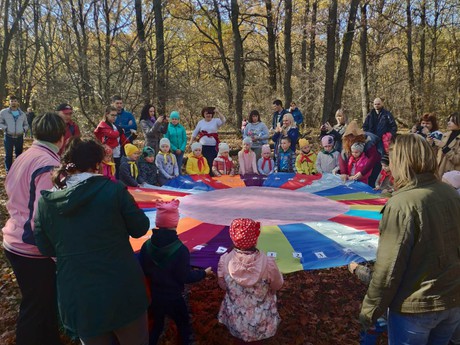 Сегодня, 13 октября, в ДОУ состоялся туристический поход выходного дня "Поход в осенний лес" в рамках реализации муниципального проекта "Возрождение туристического движения". Родителей и детей встретили инструктор по физической культуре Ангольт Е.В., педагоги Звягина Г.В., Орехова М.П., Воронова И.В., Бондаренко И.А., Фоминых Е.И. и самый главный лесной житель - Лесовичок (Перькова И.В.). Поход, протяженностью 3 км, включал передвижение по пересечённой местности и привал, где дошкольники вместе с родителями играли, участвовали в эстафетах, танцевали, искали клад. В завершении туристического похода всем семьям, а их было 33, были вручены грамоты и сладкие призы.