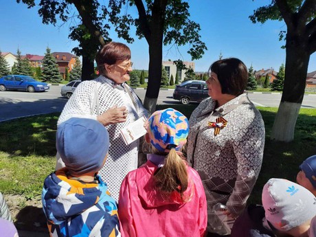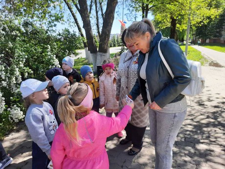 Педагоги, воспитанники детского сада напомнили, что ношение в эти праздничные майские дни георгиевской ленты - символ памяти погибшим в годы Великой Отечественной войны, знак поддержки российской армии и наших бойцов.
