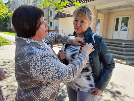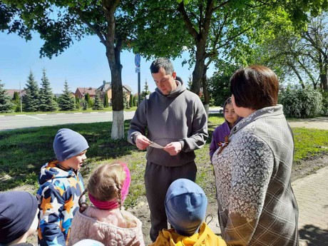 Кодекс ношения георгиевской ленты, разработанный Всероссийским общественным движением «Волонтеры Победы», регламентирует, куда ее следует крепить. Эти правила были прописаны в буклетах, которые дошкольники вручали жителям города с георгиевской лентой.