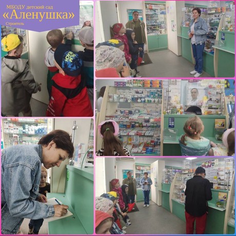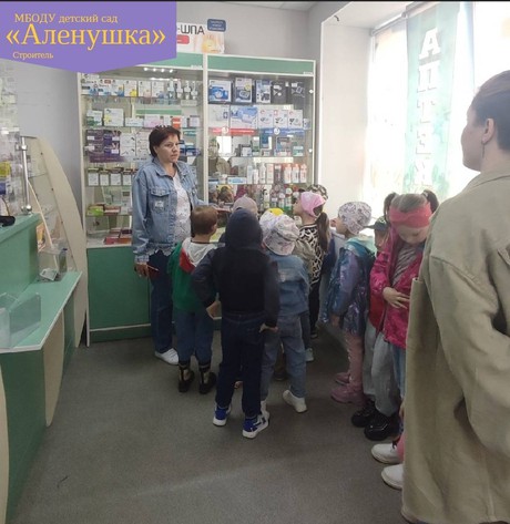 В рамках реализации данного направления с воспитанниками группы «Дюймовочка» была проведена экскурсия в аптеку «Мир лекарств», где они познакомились с профессией фармацевт, понаблюдали за его работой. Ребята узнали, что аптека это учреждение, где продают, покупают лекарства, лечебные средства и предметы санитарии и гигиены.