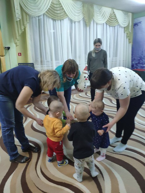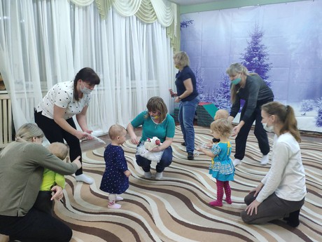 Сегодня состоялась очередная встреча педагогов ДОО с родителями и малышами, посещающими Консультационный центр "Центр игровой поддержки". Встреча со Снеговиком, разнообразные игры вызвали восторг у маленьких гостей и их родителей.