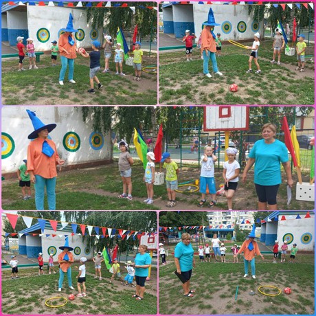 Продолжением утренней фитнес-зарядки в нашем детском саду, которая дала старт физкультурным мероприятиям, стал спортивный праздник «Путешествие по станциям ЗДОРОВЬЯ», который был направлен на пропаганду массовости физической культуры и спорта и на формирование воспитательных качеств дошкольников. Ребята научили Незнайку выполнять зарядку со спортивным инвентарем, играть в разные спортивные игры «Конный спорт», «Передай мяч», «Бег с эстафетными палочками», «Удержи волан на ракетке», «Проведи мяч».