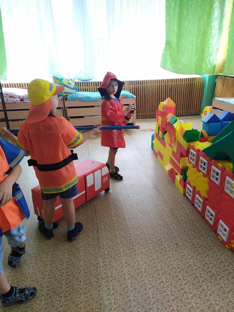 Сегодня воспитанники нашей группы «Почемучки» придумали интересную игру «Тили – Бом, загорелся Наташин дом!». В ходе этой игры ребята вспомнили правила безопасного поведения при возникновении пожара, какие средства защиты можно изготовить из подручных средств, какой номер должны набирать при пожаре. Проиграли различные ситуации поведения во время возникновения пожара дома: нельзя от страха прятаться в укромных местах квартиры (под кроватями, в шкафах), так как в задымленных местах помещения отыскать их спасателями будет нелегко. А так же, расширили знания о способах тушения пожара, о том, что необходимо пожарному для борьбы с огнем.