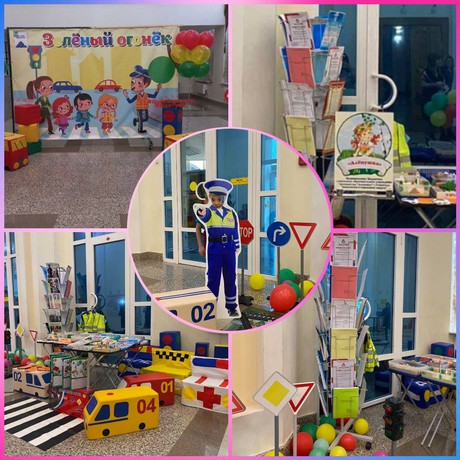 В фойе была организована выставка по правилам дорожного движения, в которой принял участие коллектив нашего детского сада.