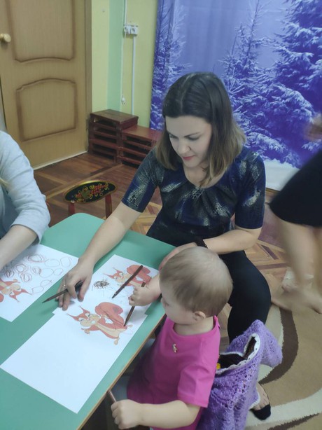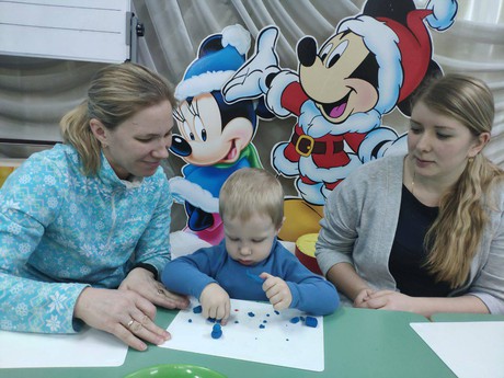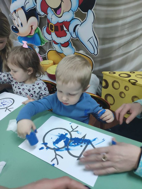 И сегодня, 28 ЯНВАРЯ, на очередной встрече в консультационном центре малыши встретились с веселым снеговиком. Сначала они слепили снеговику его друзей. Затем весело поиграли в снежки, и на паровозике отправились в лес к его подружке Белке. Все вместе ребята собирали бусы для белки и угощали ее орешками, которые старательно нарисовали. Играли со снеговиком в музыкальные игры, а в завершени встречи пальчиками разрисовали портрет снеговика.