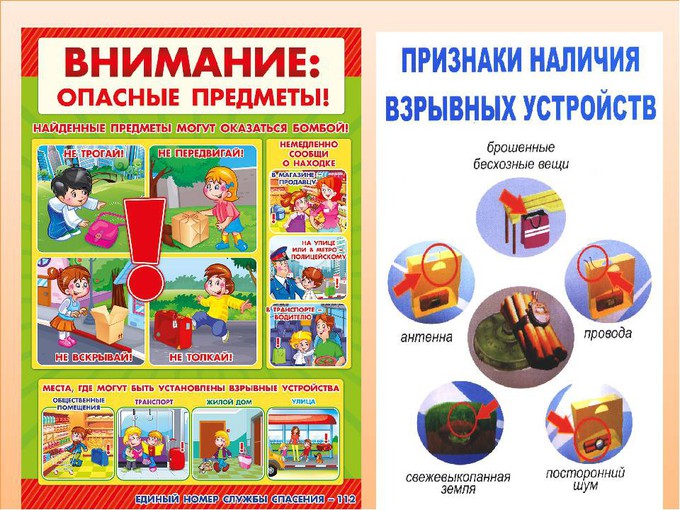 ! Необходимо немедленно сообщить об обнаружении подозритедьного предмета взрослым.