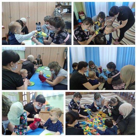 Сегодня в Консультационном центре "Центр игровой поддержки" педагоги Рагозина Е.И. и Кириллова Л.А. вместе с родителями и малышами, посещающими наше ДОО, путешествовали вместе с героями сказки "Колобок" - Колобком, Зайцем, Медведем, Лисичкой. Путешествуя с персонажами сказки, ребята танцевали вместе с ними, рисовали сочную и вкусную морковку, лепили ароматные ягоды и красивые бусы, строили домик.