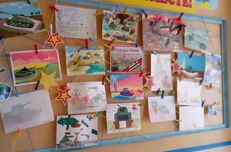 В рамках проведения мероприятий, посвященных 80 - летию победы в Курской битве и с целью воспитания у дошкольников патриотических чувств, с детьми старших и подготовительных групп была организована выставка рисунков «Курская битва.Знать и помнить!»