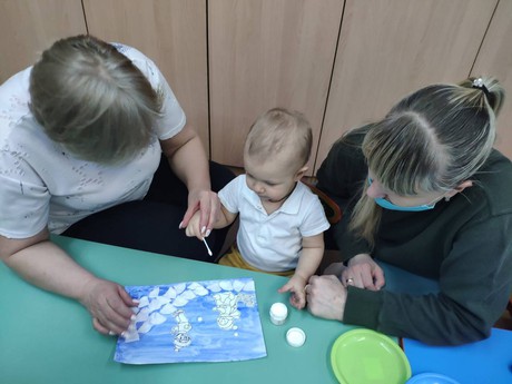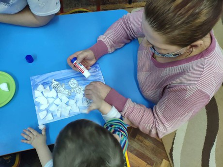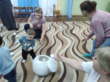 Сегодня на базе нашего ДОО прошла встреча с родителями и малышами , посещающими Центр игровой поддержки. Несмотря на то, что за окном совсем не зимняя погода, тема игрового сеанса "Зимние забавы". Ребята играли в снежки, наклеивали "снежную" горку и ребят, катающихся на санках и коньках, рисовали падающий снег, кормили птичек "зёрнышками", весело танцевали, лепили забавного снеговика.