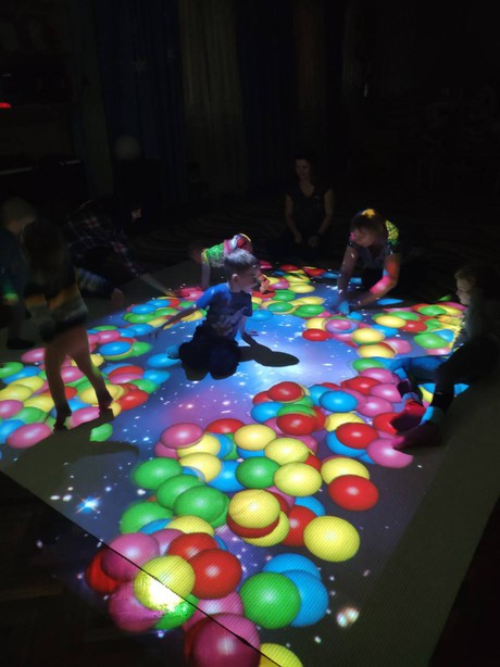 Тема игрового сеанса "Зимние забавы" позволила педагогам Бондаренко И.А., Старченко Т.Д., Галкиной Л.Н. организовать игры со снежками, "катание" на санках и лыжах, "укрыть" дома снегом, помочь синичкам в поисках еды и главная забава, которая увлекла малышей - интерактивный пол.