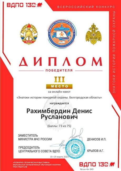 * Рахимбердин Денис награждён дипломом победителя- 3 место.