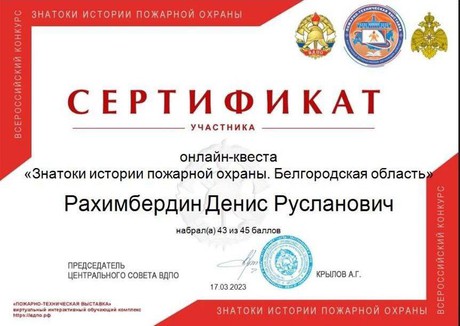 При поддержке МЧС России Всероссийское добровольное пожарное общество в дистанционном формате провело конкурс «Знатоки истории пожарной охраны. Белгородская область», в котором приняли участие воспитанники группы «Ягодка». Конкурс проходил в дистанционном формате в виде онлайн-квеста. Мероприятие было посвящено 130 летию Всероссийского добровольного пожарного общества.